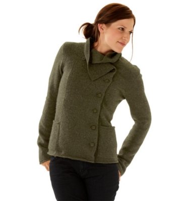 Whether or not you've experienced the uplifting effect big, bold stripes can have on your day, you're sure to with the Heartfelt. Putting it on is like being home for the holidays—that terrific mix of happiness and relaxation. The knit is a warm, fuzzy blend of lambswool and angora, boiled down for a dense but light feel and the fit is part jacket, part sweater: loose, cozy shawl collar, an asymmetrical front that closes with oversized buttons, front patch pockets, and jersey roll finishes throughout. shawl collar that is loose and cozy asymmetric jersey roll front wraps with oversized two-toned buttons princess seams front patch pockets with jersey roll finish jersey roll finish on cuffs and hem